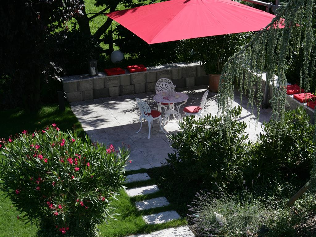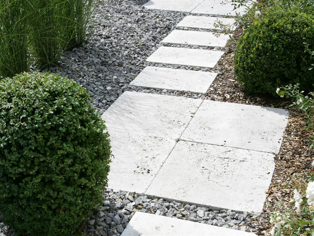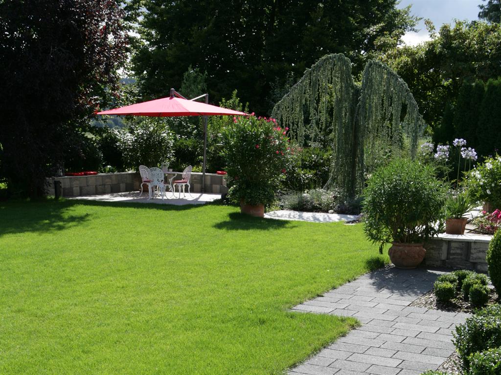 Hier wurde ein bestehender Garten umgestaltet. Der alte Baumbestand wurde erhalten um dem neu entstandenen Garten einen Rahmen zu geben. Neue Pflasterwege und Schrittplatten wurden angelegt.