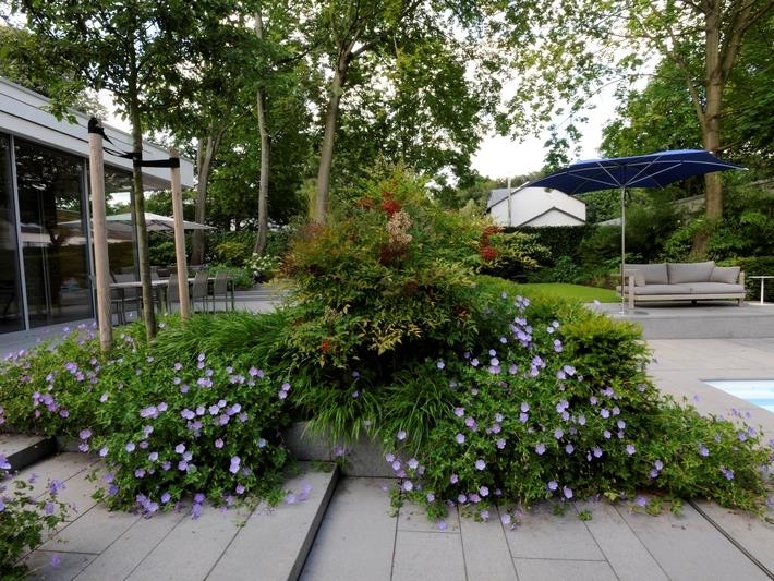 Dieser Garten in der Kölner City bringt sehr schön Bestehendes und Neues zusammen: Die darin respektvoll einbezogenen Bestandsbäume erzeugen mit den neugeschaffenen Sitz- und Aufenthalts-Möglichkeiten, tolle Gartenräume - ohne dabei beengt zu wirken. Das geschmackvoll modernisierte Wohnhaus wird somit um nutzbare Freiräume und Blickachsen ergänzt. Der Garten ist vollautomatisiert und illuminiert.
