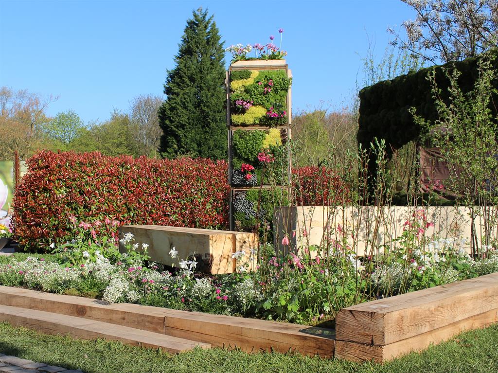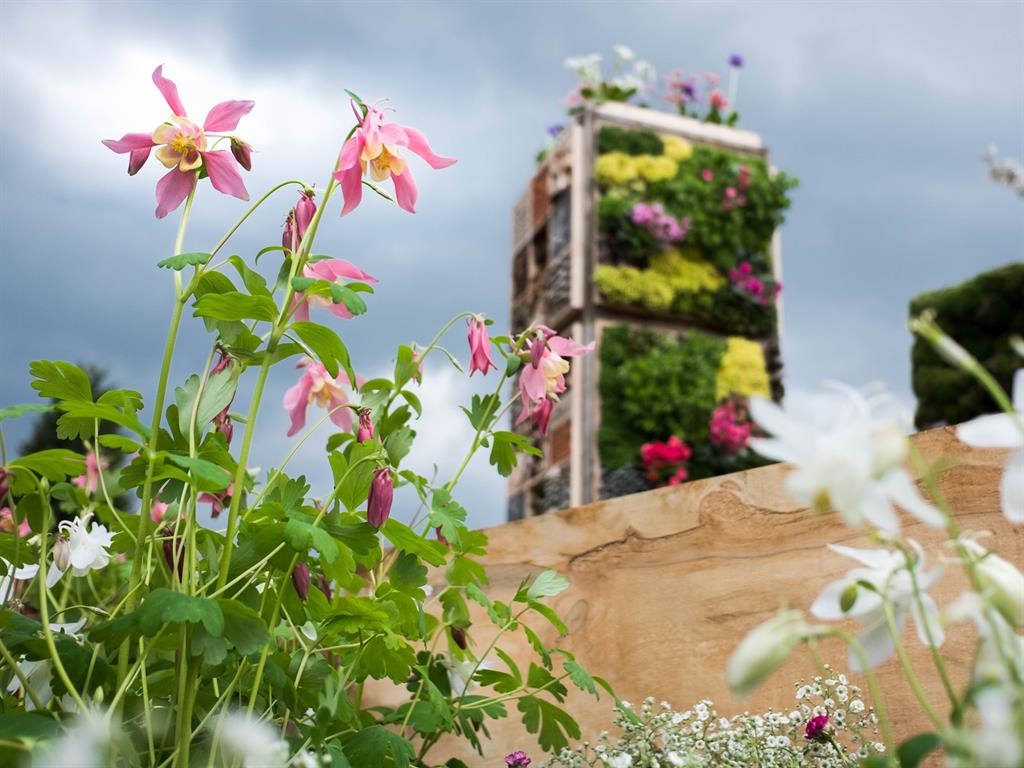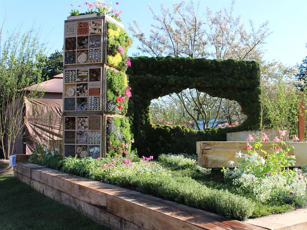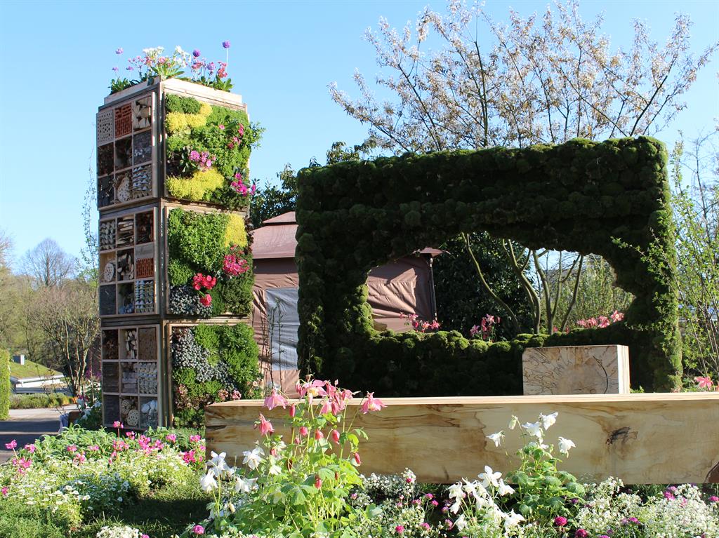 Ein vertikal bepflanzter "Beetower" als zentraler Blickfang wird eingerahmt von Eichenschwellen, um Ökologie und Stil zu kombinieren. Insektenfreundliche Pflanzen bieten der Fauna, Sitzplätze und Grünflächen den Menschen einen Ort des gemeinsamen Wohlfühlens. Eine gelungene, zukunftsweisende Komposition, die zurecht den ersten Platz im Wettbewerb der Mustergartenanlage im Grugapark erzielte.